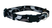 Largeur 20mm Longueur 32 à 52cm. Sangle en polyamide très solide. Forte résistance, jusqu'à 1000kg. Boucles et passants en Acétal pour assurer une grande résistance à la rupture. Dessins aux design exclusifs tissés sur la sangle avec des fils teintés dans la masse. Maintien des couleurs au soleil et au lavage à 30°C (ne déteint pas). Bouclerie en acier avec finition nickelée. Sangles rembordées, aucune arrête vive en contact avec l'animal. Modèle léger et adapté à la morphologie de l'animal. Boucle rapide. Fabriqué en France.