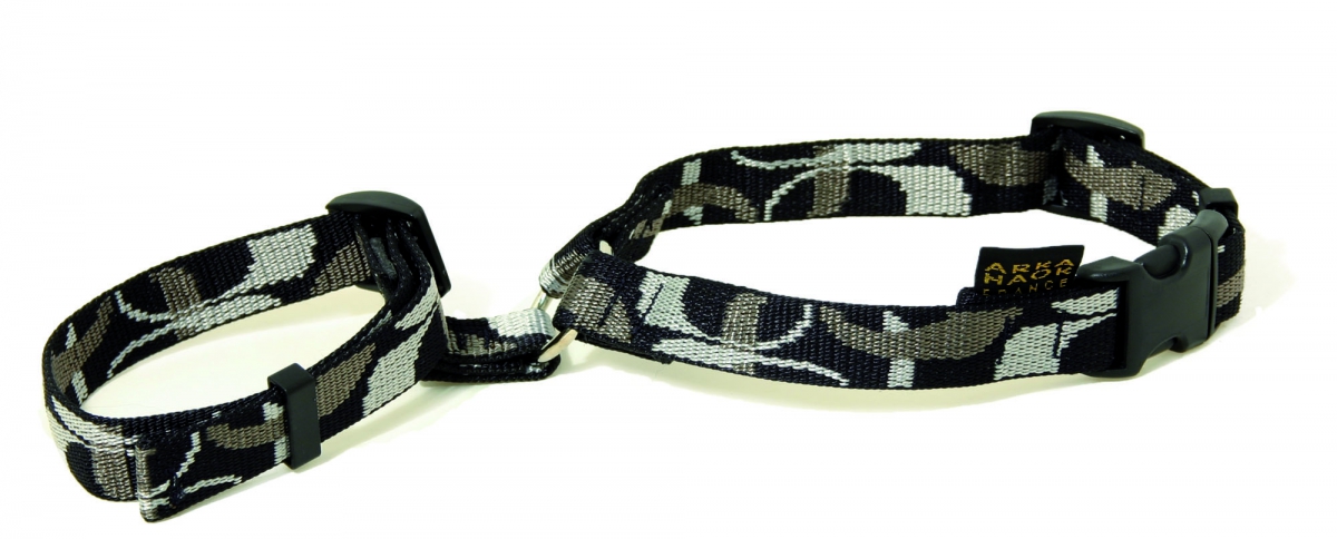 Largeur 20mm Taille 2. Sangle en polyamide très solide. Forte résistance, jusqu'à 1000kg. Boucles et passants en Acétal pour assurer une grande résistance à la rupture. Dessins aux design exclusifs tissés sur la sangle avec des fils teintés dans la masse. Maintien des couleurs au soleil et au lavage à 30°C (ne déteint pas). Bouclerie en acier avec finition nickelée. Sangles rembordées, aucune arrête vive en contact avec l'animal. Modèle léger et adapté à la morphologie de l'animal. Boucle rapide. Ajustable tour de museau et tour de cou. Fabriqué en France.