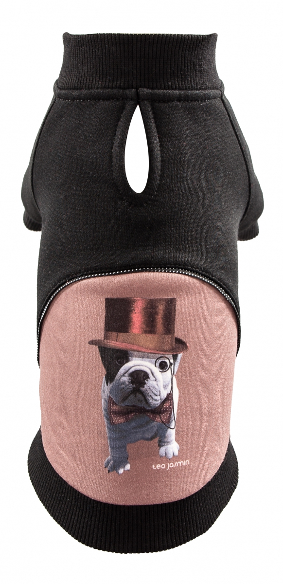 Sweat Dandy noir avec nœud papillon fixe en relief. Téo en impression sérigraphie. Manches pour pattes avant. Ouverture pour le passage de la laisse. Fermeture par pressions. 100% coton. SWEAT BACK LENGTH / LONGUEUR DOS CHEST / TOUR DE POITRAIL Maximum TYPES DE CHIENS (quelques exemples) T20 22CM 32CM Chihuahua T25 25CM 38CM Pinscher nain T30 30CM 46CM Yorkshire, Cocker T35 36CM 60CM Bouledogue français T40 42CM 70CM Bouledogue anglais, Beagle T45 48CM 84CM Labrador