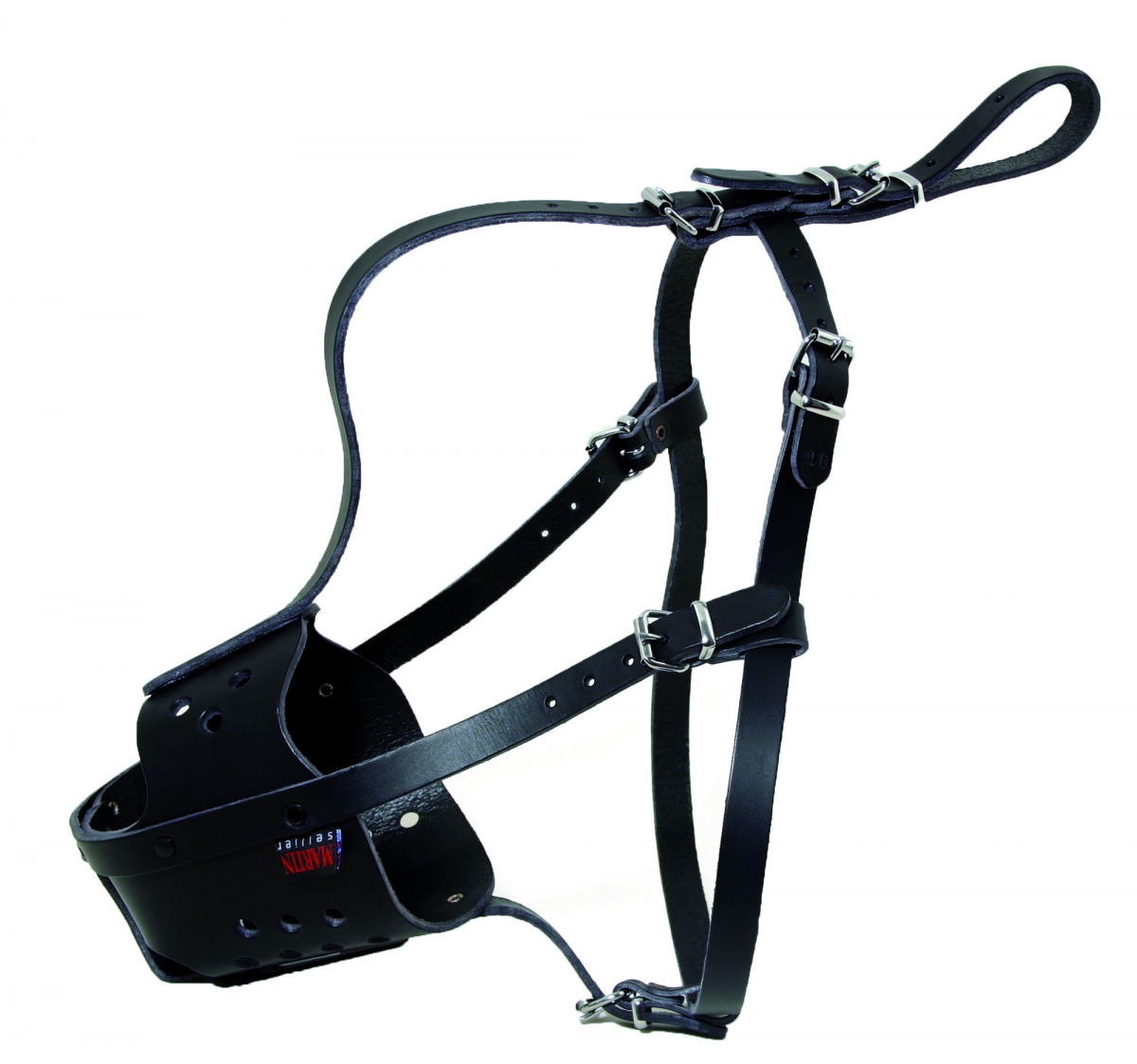 Muselière avec renfort métal. La taille en centimètre correspond au tour de cou du chien.