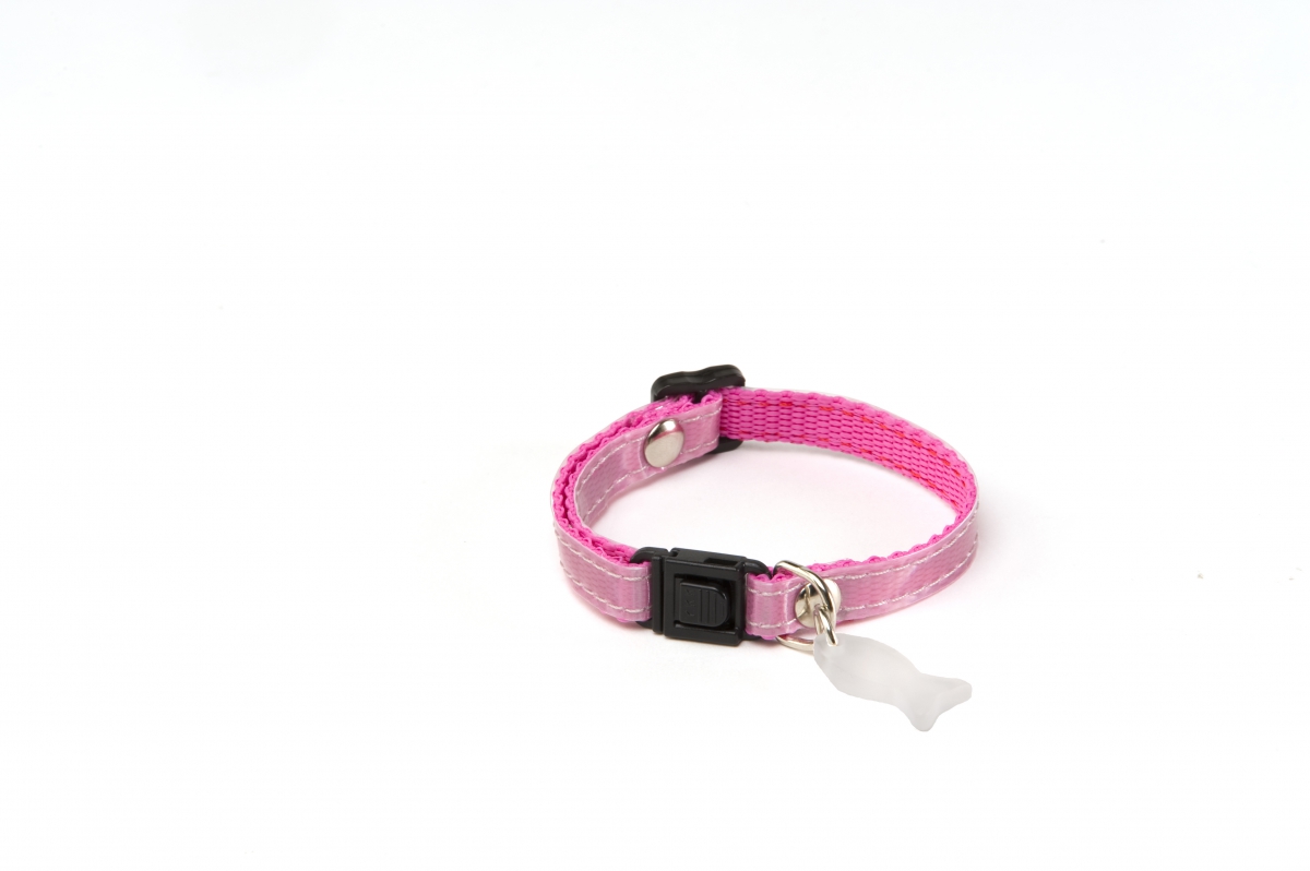 Largeur 10mm. Longueur 15 à 25cm. Bande réfléchissante colorée montée sur sangle. Rivets double tête. Boucle anti-étranglement. Pendentif. Fabriqué en France.
