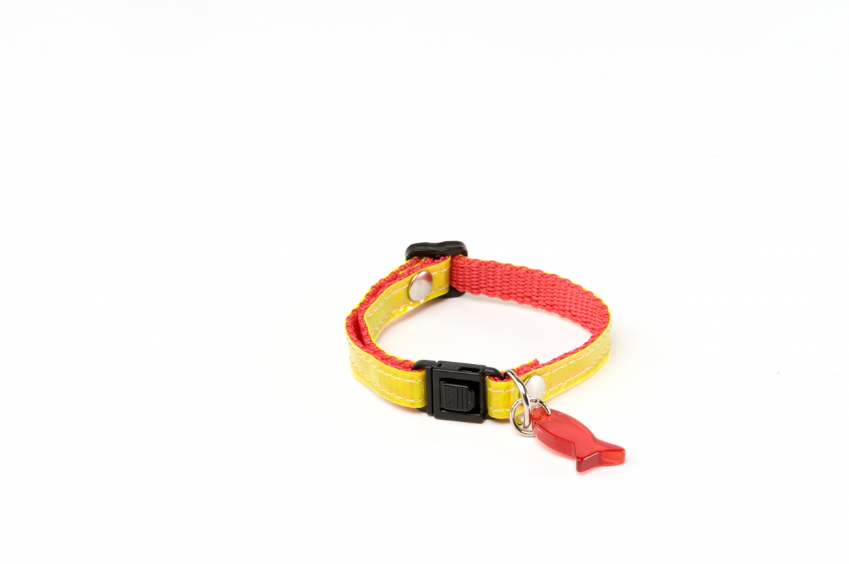 Largeur 10mm. Longueur 15 à 25cm. Bande réfléchissante colorée montée sur sangle. Rivets double tête. Boucle anti-étranglement. Pendentif. Fabriqué en France.