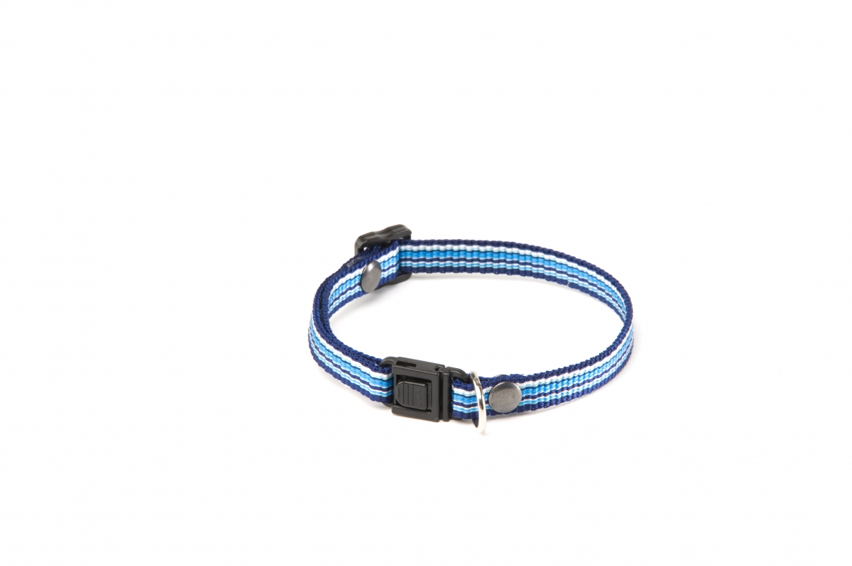 Largeur 10mm. Longueur 15 à 25cm. Tissage Jacquard. Rivets double tête. Boucle sécurité anti-étranglement. Fabriqué en France.