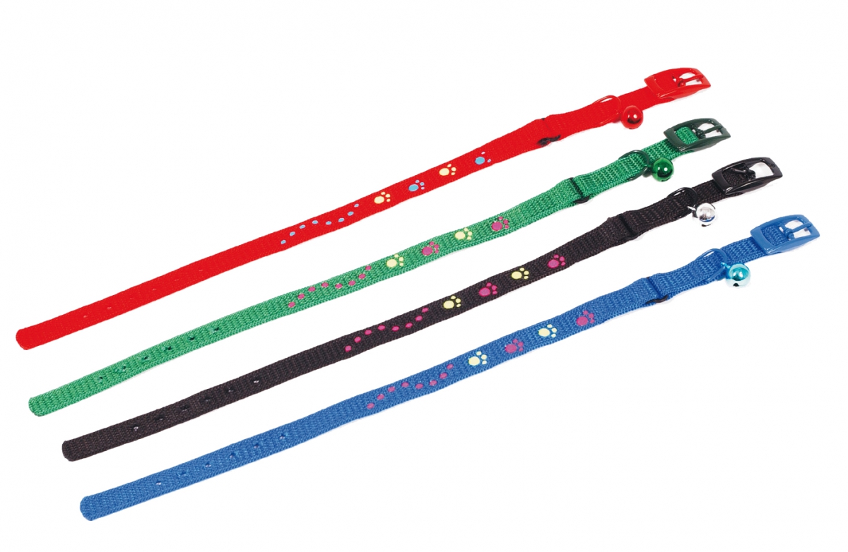 Largeur 10mm. Longueur 35cm. Elastique de sécurité. 1 grelot. Accessoires laqués.