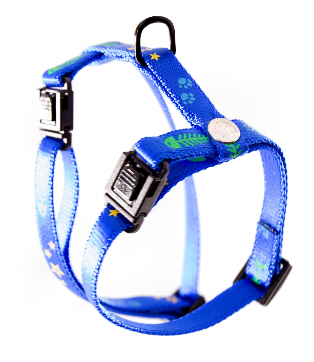 Harnais réglable en nylon Bleu "Fish & Star" pour chat