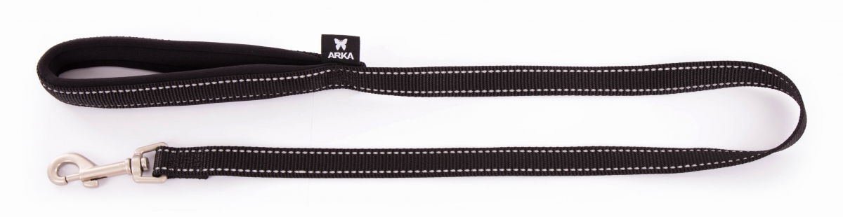 Laisse en nylon noire avec coutures réfléchissantes pour chien Néo+ Arka Haok