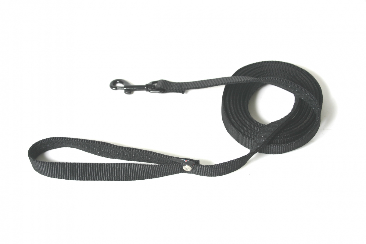 Longe noire cordeau nylon pour chien - Longueur 300cm - largeur 2cm