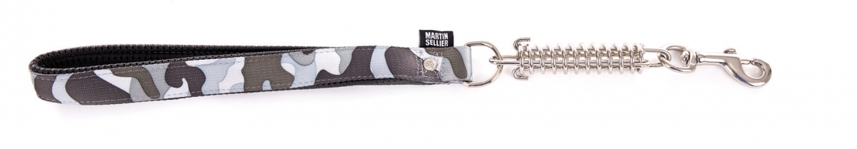 Laisse courte en nylon avec amortisseur métal Collection Camouflage. Pour Chiens. Coloris Gris.