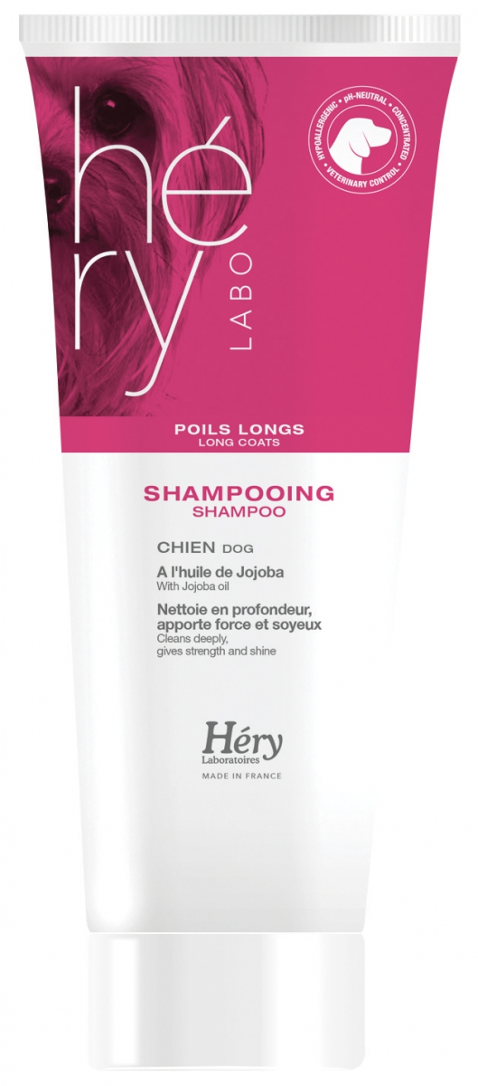 Shampooing pour Chien Poils Longs, Héry nettoie en profondeur, apporte force et soyeux. A l'huile de Jojoba.