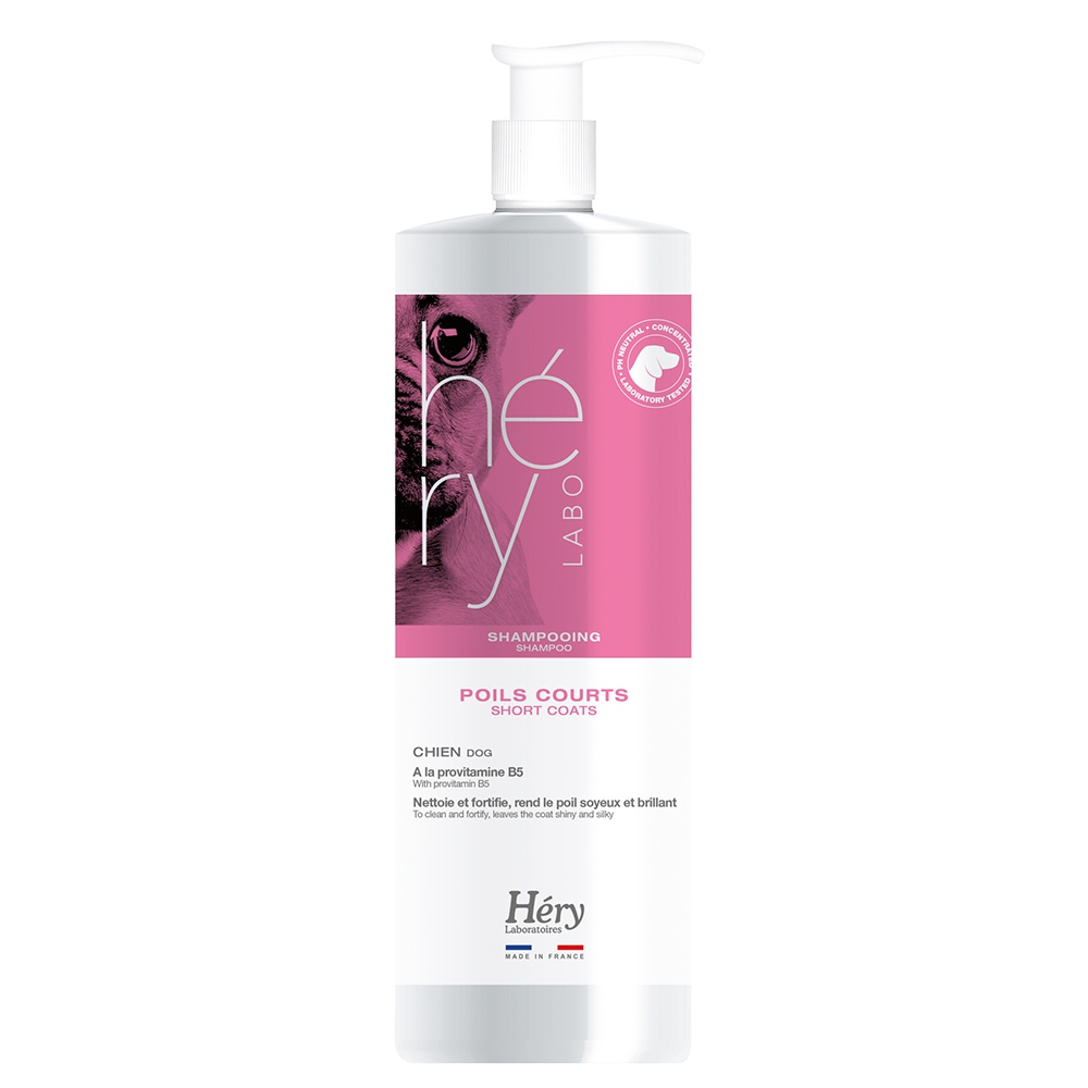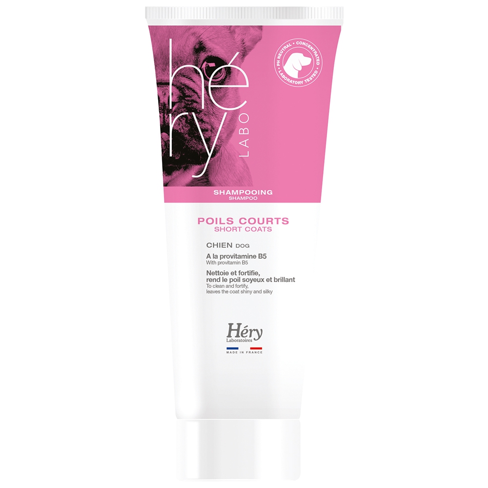 Shampooing pour Chien, Poils Courts, Héry. Nettoie, fortifie, rend le poil soyeux et brillant. A la provitamine B5.