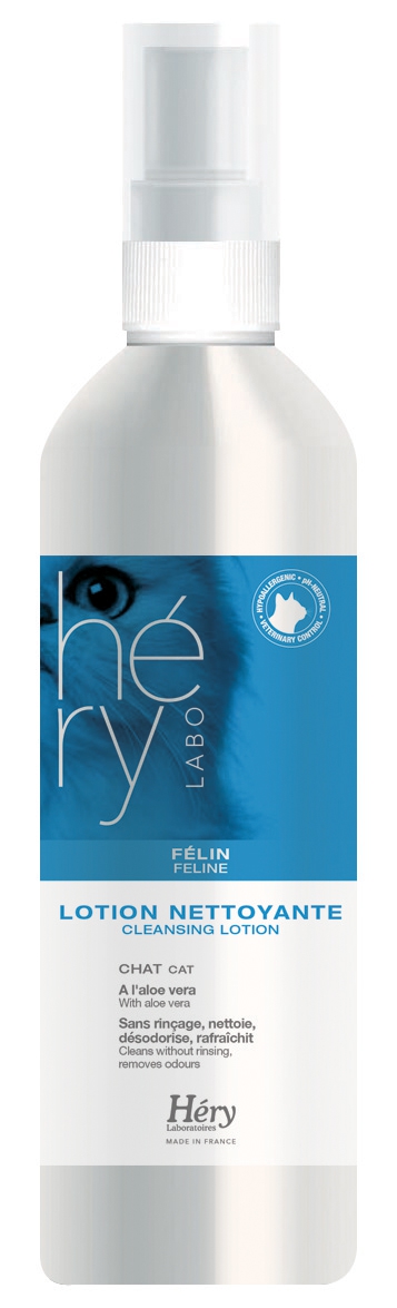 Lotion Nettoyante pour Chat Héry. Sans rinçage, nettoie, désodorise, rafraîchit. A l'aloé véra.