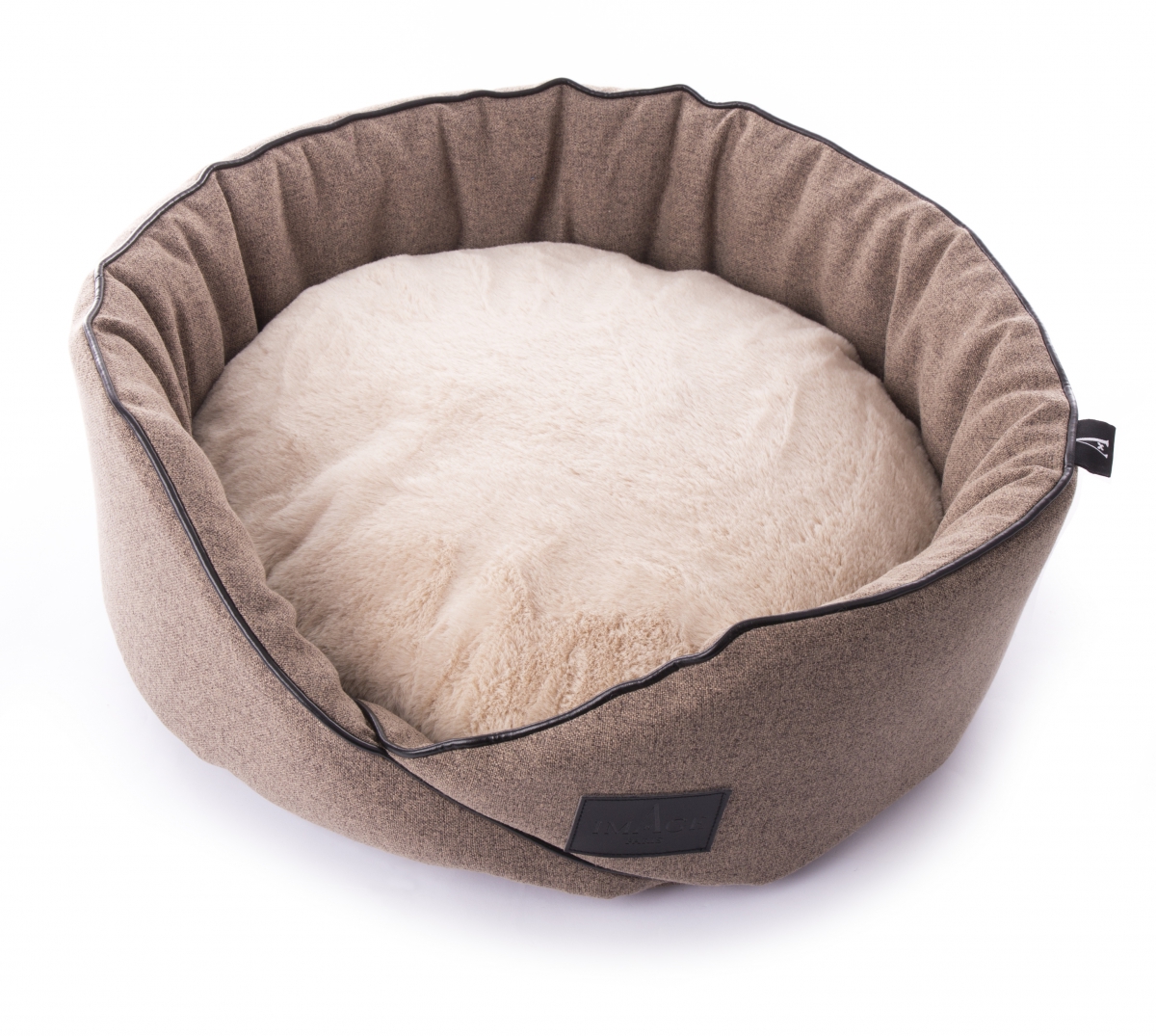 Corbeille ronde : pour les chats et les petits chiens. Un contour en mousse pour une bonne tenue, un coussin bien rebondi pour le moelleux, une face en fourrure et l'autre entissu très doux.