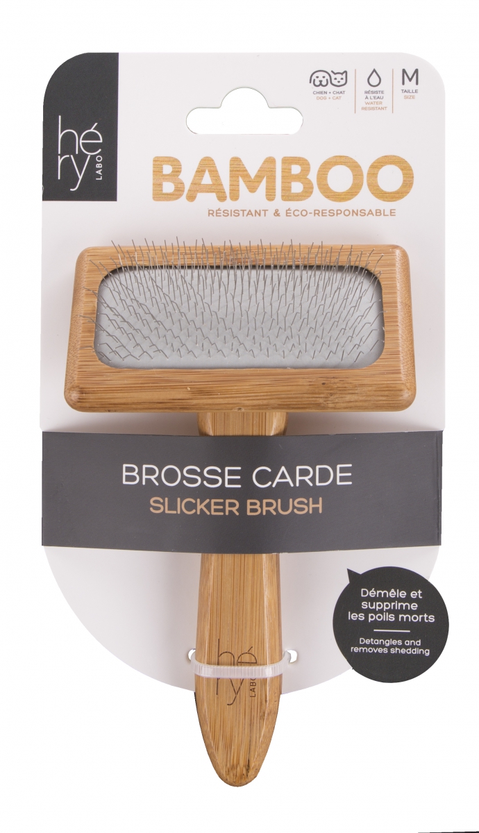 Démêle et supprime les poils morts. La brosse carde est spécialement étudiée pour le brossage des sous-poils du pelage de votre chien. Grâce à ses picots souples et recourbés, vous pourrez brosser en profondeur et démêler les noeuds en douceur. A utiliser avec précaution pour ne pas traumatiser la peau au moment du brossage. Elle s’utilise à rebrousse poils pour obtenir un effet bombant.