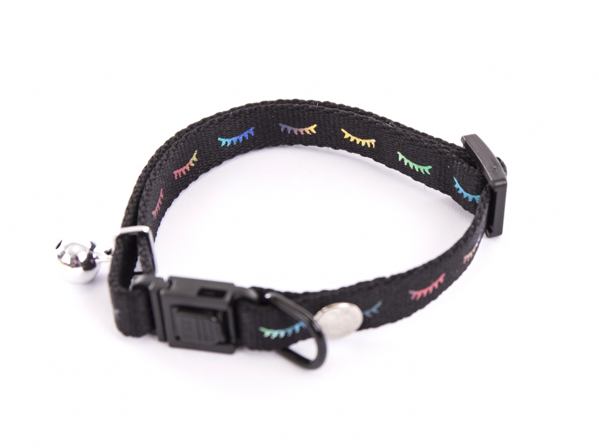 Motifs cils noirs ou multicolors / Couleur et dessin tendance / Boucle anti-étranglement /Nylon épais et résistant / Grelot de couleur assortie / 10-20/30 cm
