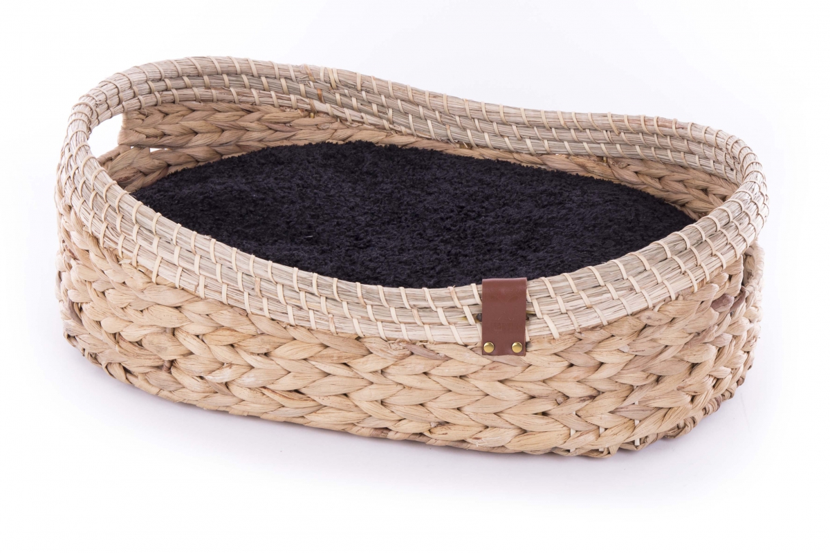 Une jolie corbeille ovale qui acceuillera votre chat ou votre chien pour des siestes de rêve. Sa forme allongée permet à l’animal de dormir en s’étirant de tout son long. Le coussin est amovible et bien moelleux. Une face est en imitation fourrure très douce et l’autre en tissu uni. Ce design élégant apporte une touche de nature et de design dans votre déco. Chaque pièce est unique et fabriquée entièrement à la main et avec des matières vivantes et naturelles comme le bois, le bambou ou la jacynthe d’eau.
