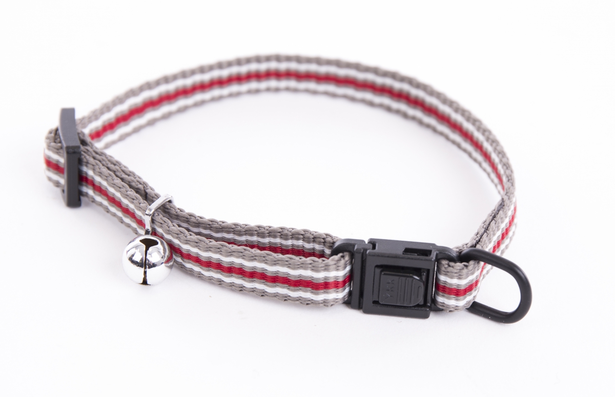 Collier pour chat avec grelot, boucle anti-étranglement et accessoires noir mat.