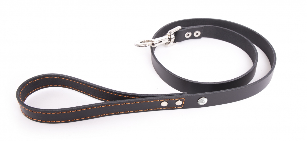 Laisse cuir FLASH coupé franc et couture fluo - Noir et orange