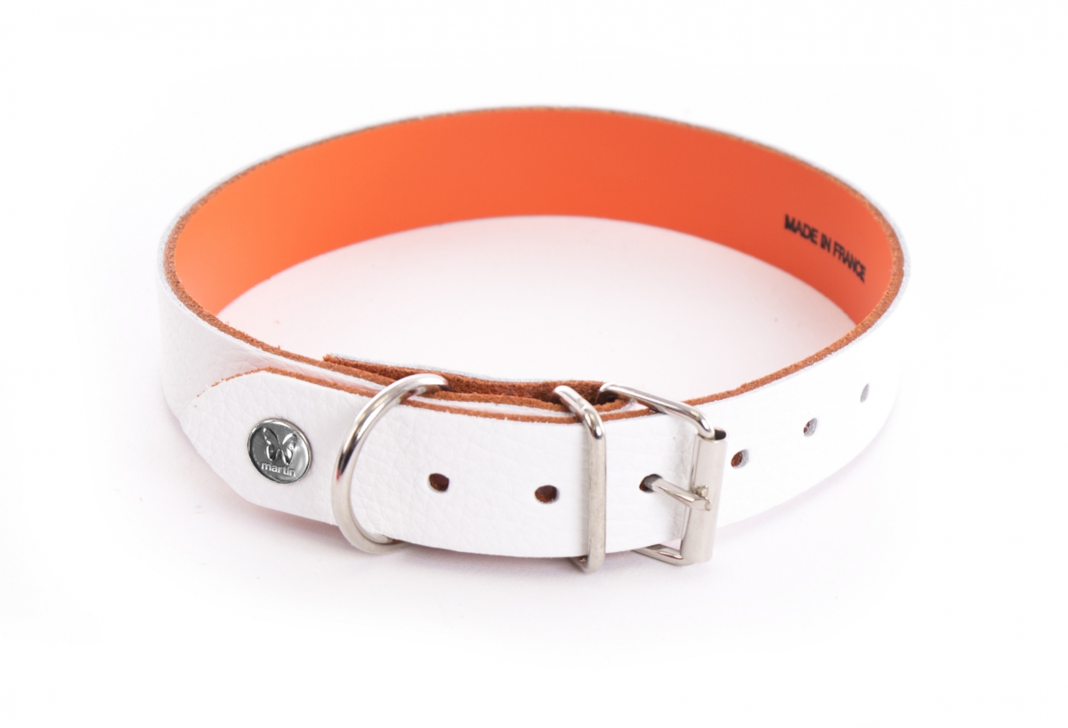 Collier Allure en cuir Blanc/Orange - L.56 x l.2,6 x 40-50 cm