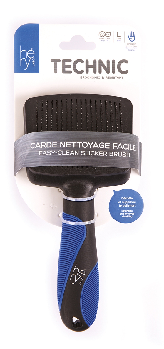 Démêle et supprime les poils morts. La carde nettoyage facile est spécialement étudiée pour le brossage des sous-poils du pelage. Grâce à ses picots souples et recourbés, vous pourrez brosser en profondeur et démêler les nœuds en douceur. Son système de bouton poussoir est idéal pour récupérer facilement les poils de la brosse