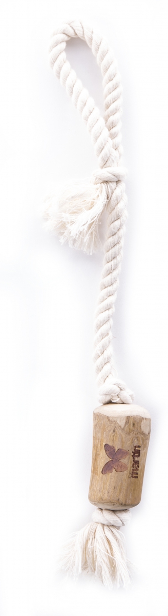 Bois de caféier à mâcher avec une corde 100% coton pour chiens. Produit issu de la terre.