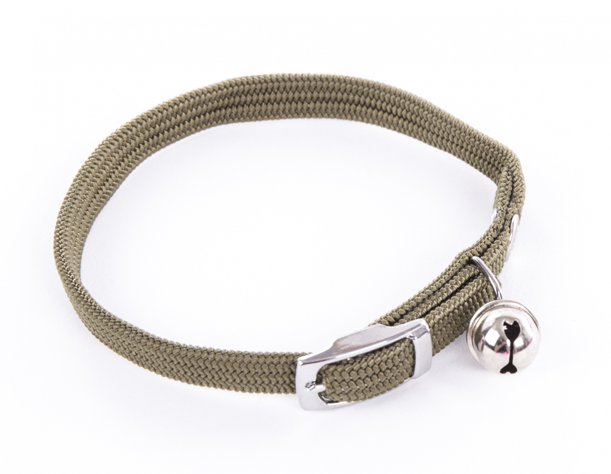 Collier tout élastique avec grelot et boucle métal. Dimensions : 10mm x 30cm.