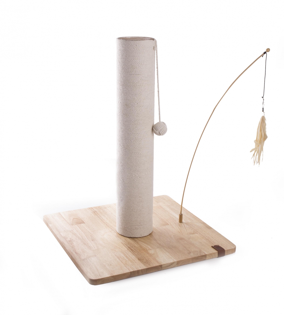Le poteau griffoir XL Pure avec une canne à pêche est doté d’un socle carré en bois de caoutchouc de 50 cm. Sa surface lisse est facile à nettoyer. Sur le socle, un grand poteau en coton de 12 cm de diamètre et de 66 cm de hauteur est conçu pour satisfaire les besoins de griffades de votre chat.