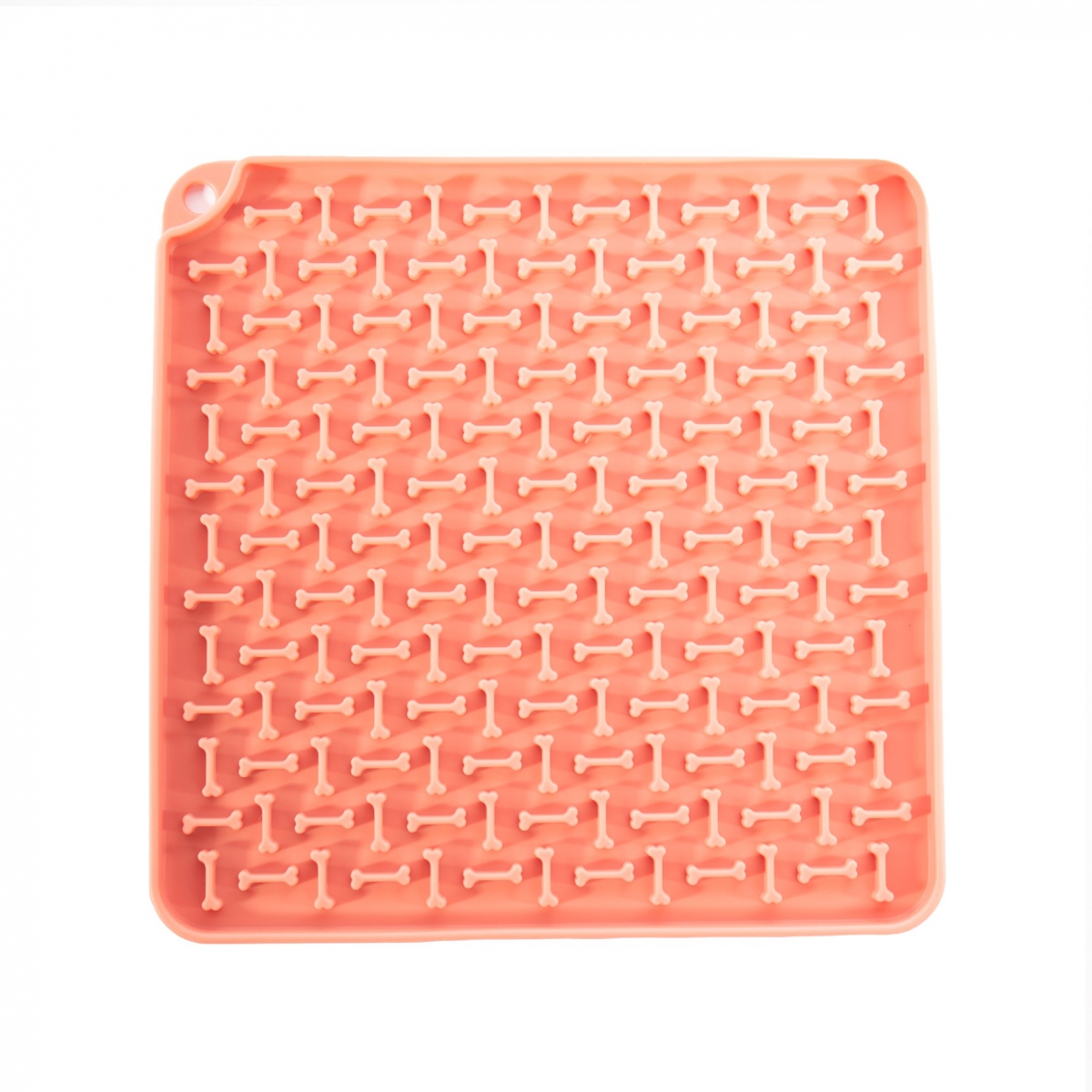 • Tapis de léchage "carré" silicone pour chien et chat - rose