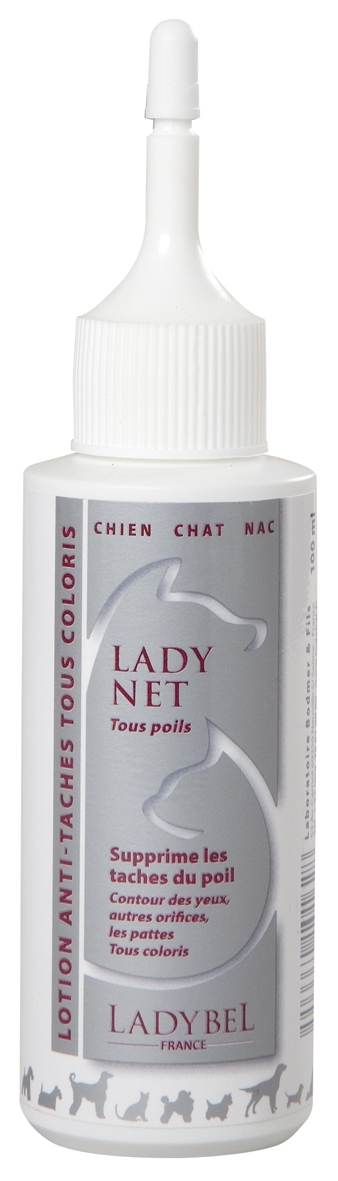 • “lady net” élimine en douceur toutes les taches dues aux écoulements naturels de l’animal : larmes, salive , urine, etc…sur tous types et toutes les couleurs de poil.