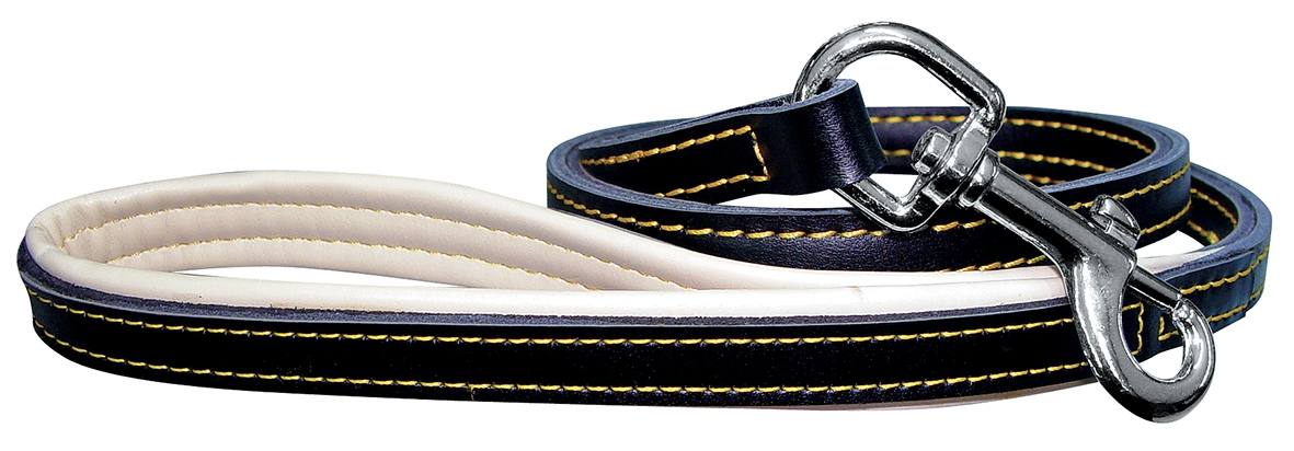 Laisse cuir doublé rembordé pour chien  - noir et blanc