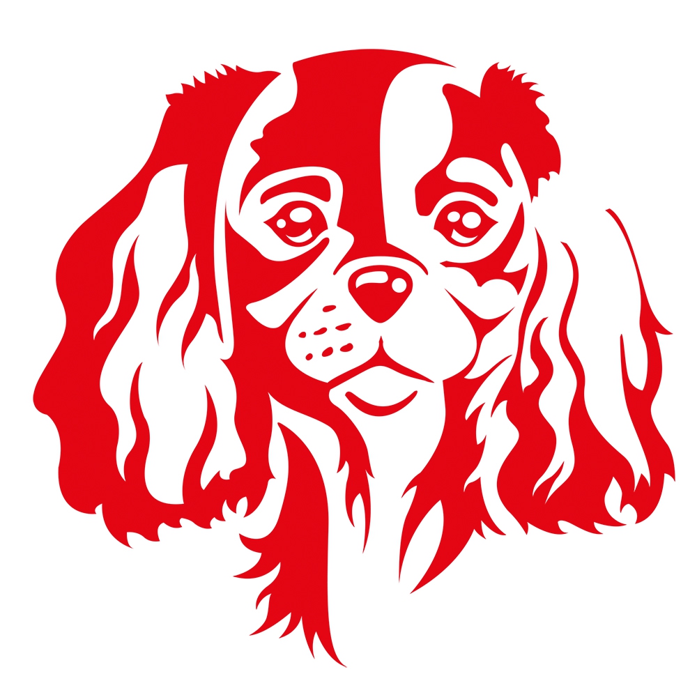 Autocollant Sticker tête de chien Cavalier King Charles - 15cm - Rouge