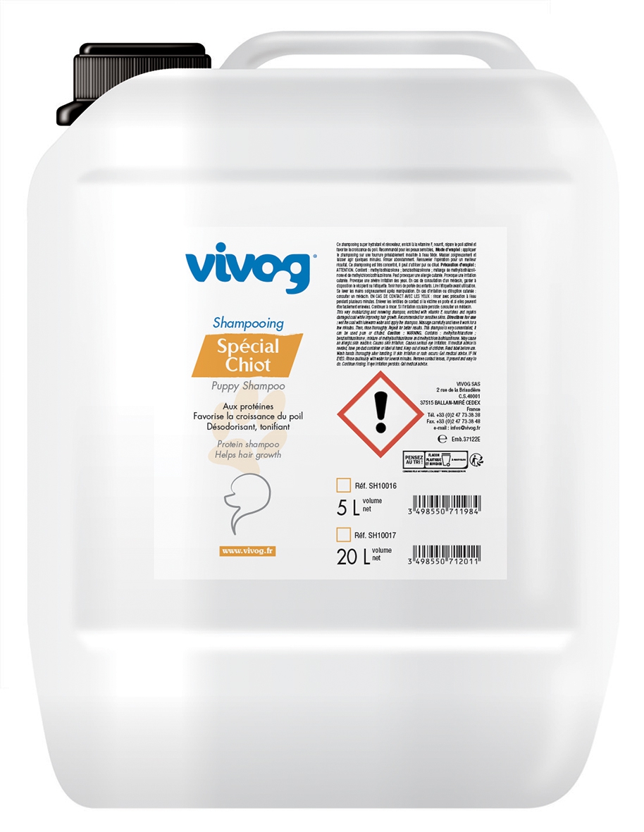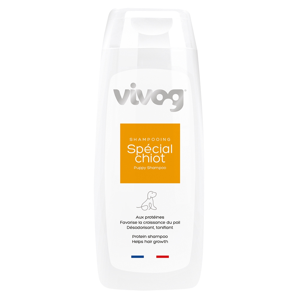Le shampoooing chiot Vivog est super hydratant et ultra-doux. Favorise la croissance du poil. Rénovateur. Sans paraben. A l'huile de lin.