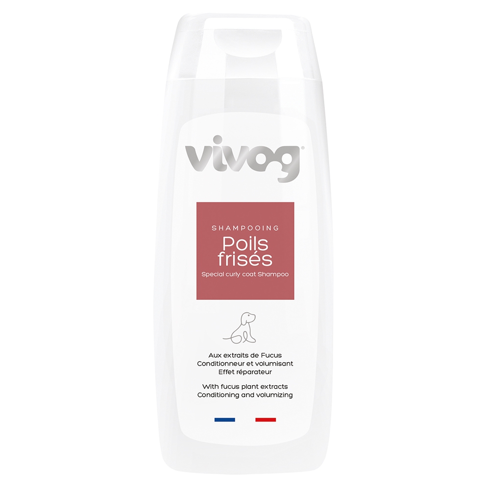 Le shampooing chien Vivog Poils laineux, bouclés, cordés est aux extraits de Fucus. Conditionneur. Volumisant. Hydratant et filmogène. Sans Paraben.